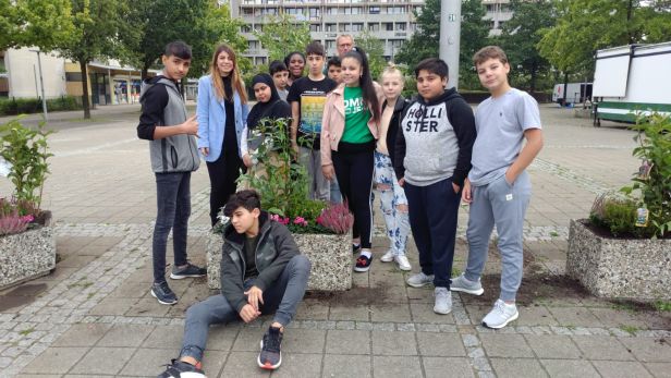 Im Rahmen des WP7 Kurses urban gardening haben Schülerinnen und Schüler der Stadtteilschule Mümmelmannsberg mit dem Bezirksamt Hamburg-Mitte eine Grünpatenschaft abgeschlossen... jetzt geht's an die Kübel...