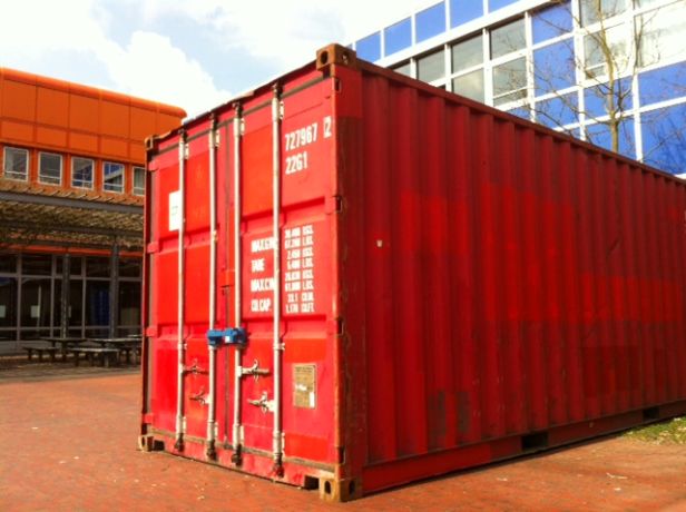 Wochenlang schlummerte ein großer, roter Container vor der Mensa friedlich vor sich. Seit dem 29.03.2016 ist es allerdings vorbei mit der Ruhe....